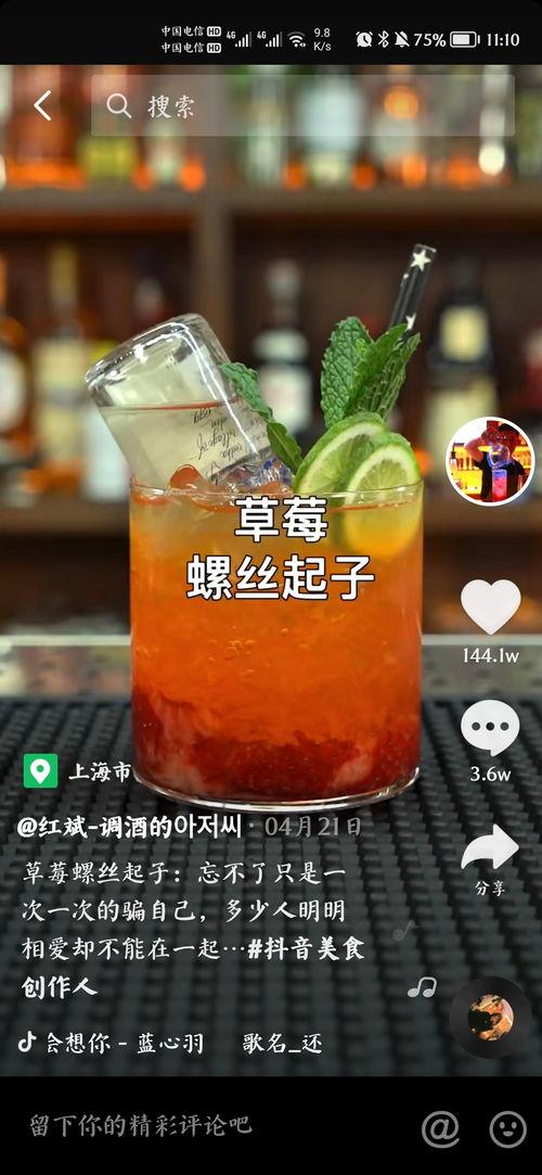 比如,抖音上的一位调酒师,用泸州老窖和橙汁调出了“橙意盎然”的鸡尾酒,色泽鲜艳,口感清爽,让人一看就忍不住想尝一口。还有B站上的一个视频,调酒师用汾酒和草莓汁调出了“草莓汾”,酸甜可口,仿佛置身于春天的草莓园。